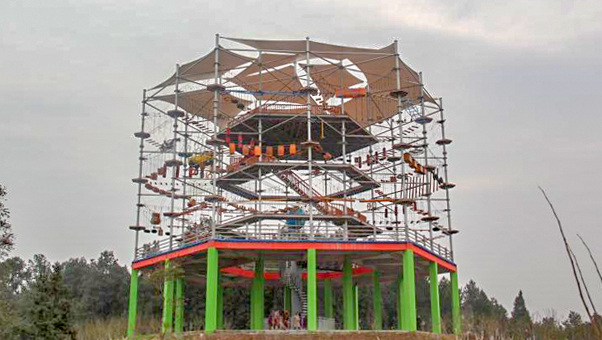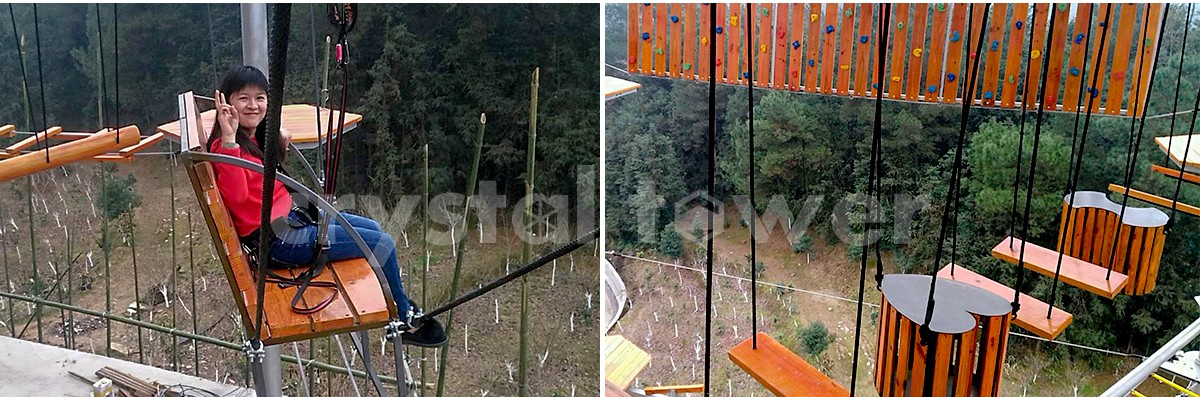 該項目是全國第二座水晶塔,總投資300多萬元,共分為3層,單層面積800余平方米,建成游樂面積2400多平方米,設備離地最高點為25.3米,能夠同時供160人玩耍。小金花水晶塔拓展項目,將運動挑戰(zhàn)與戶外旅游緊密結合,在豐富游客休閑娛樂娛樂生活的基礎上,打造出全新的休閑娛樂模式。