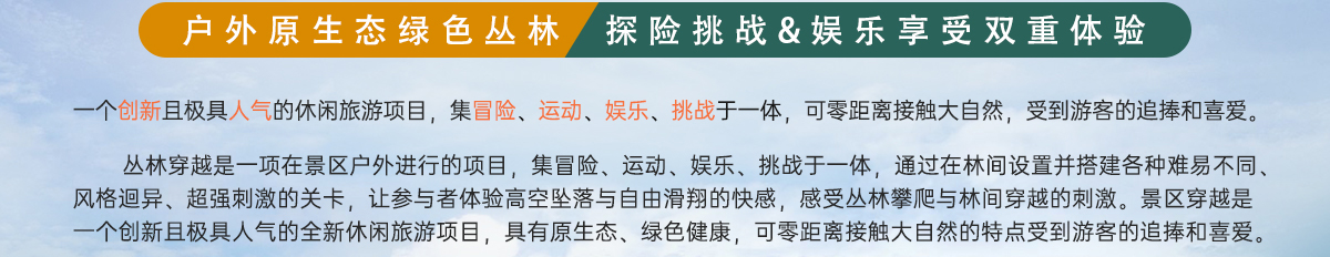 滿足各年齡段、團體及個人游客進行挑戰(zhàn)、團建、競賽等叢林穿越探險娛樂