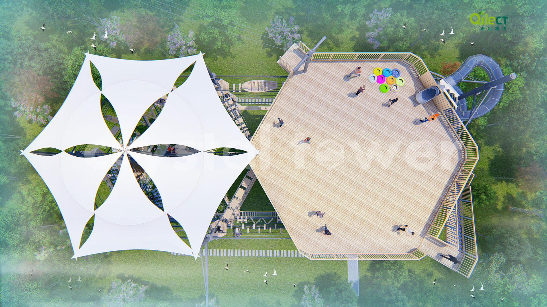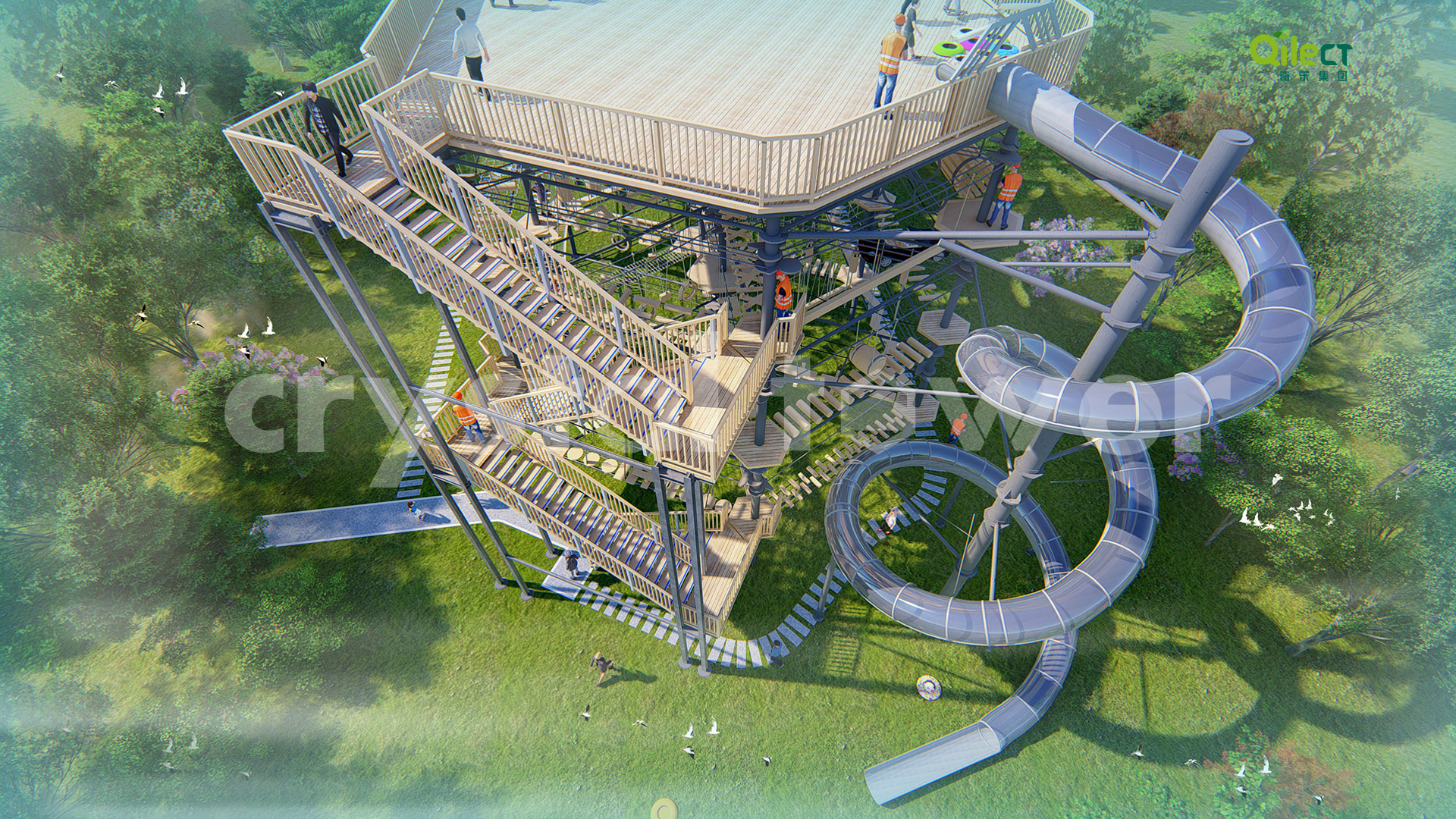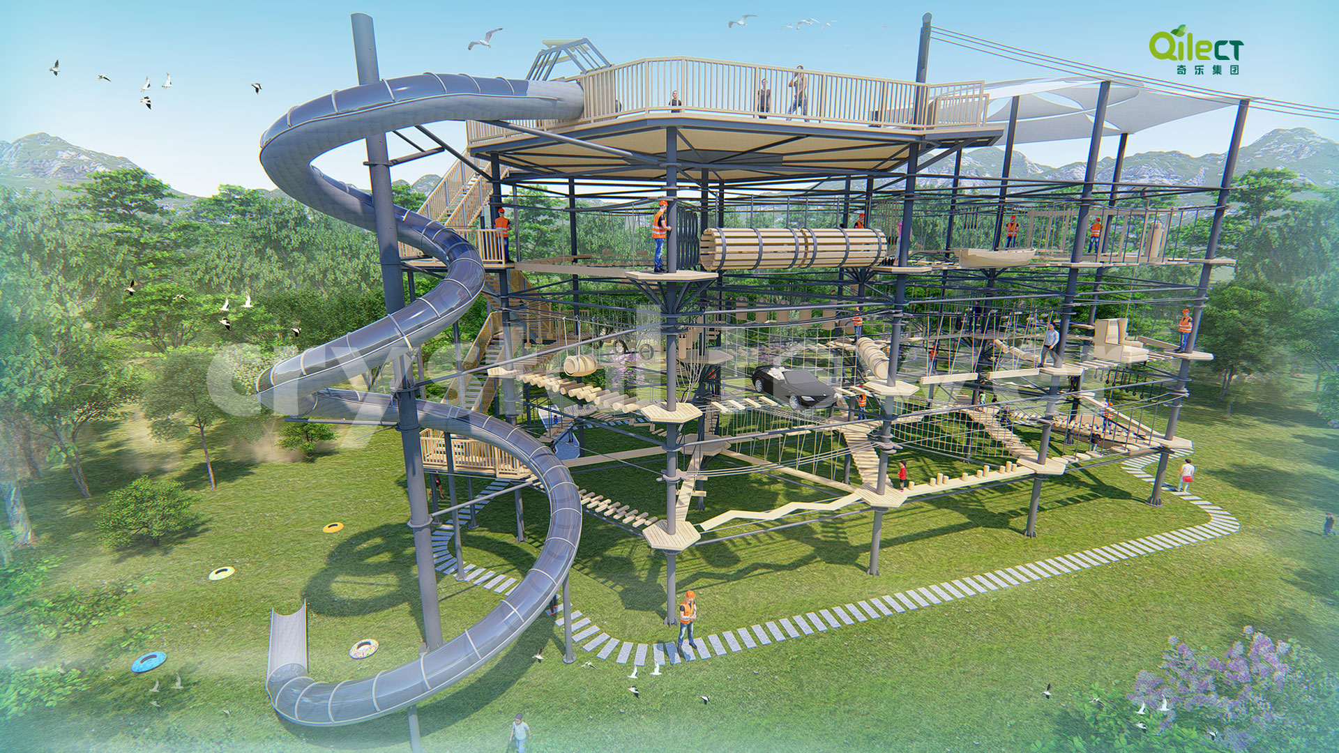 本項(xiàng)目建于戶外自然景區(qū)(亦可在室內(nèi)搭建),配置上百種運(yùn)動(dòng)健身、探險(xiǎn)互動(dòng)項(xiàng)目,項(xiàng)目游樂(lè)步道設(shè)有不同難度系數(shù)的項(xiàng)目供游客體驗(yàn),是景區(qū)中一個(gè)創(chuàng)新性、地標(biāo)性的立體娛樂(lè)綜合體。該設(shè)備占地面積達(dá)到800㎡,綜合用地面積達(dá)1000㎡,單層高達(dá)4m,內(nèi)部以晶體結(jié)構(gòu)搭建架空層1-4個(gè)步道層級(jí),打造層超過(guò)1m長(zhǎng)的空中游樂(lè)路線。
